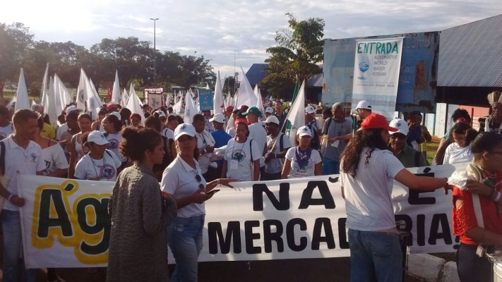 O Fórum se contrapôs ao autodenominado "Fórum Mundial da Água", que ocorreu em Brasília no mesmo período e que foi um encontro promovido a portas fechadas pelos grandes grupos econômicos que defendem a privatização das fontes naturais e dos serviços públicos de água e de saneamento.