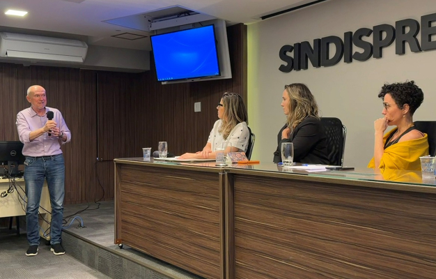 O quarto e último painel do Ciclo de Debates: História e reconstrução dos Direitos Sociais teve como tema: “STF e Direitos Sociais: terceirização, pejotização e reconhecimento de vínculo.” O encontro, realizado no 12 de novembro, lotou o auditório do SINDISPREV/RS e contou com as painelistas Mônica de Oliveira Casartelli, advogada da União, e Valdete Souto Severo, Juíza do Trabalho do TRT4 e professora de Direito. A mediação foi da advogada Carolinne Abreu, do Escritório Advocacia Fontana.